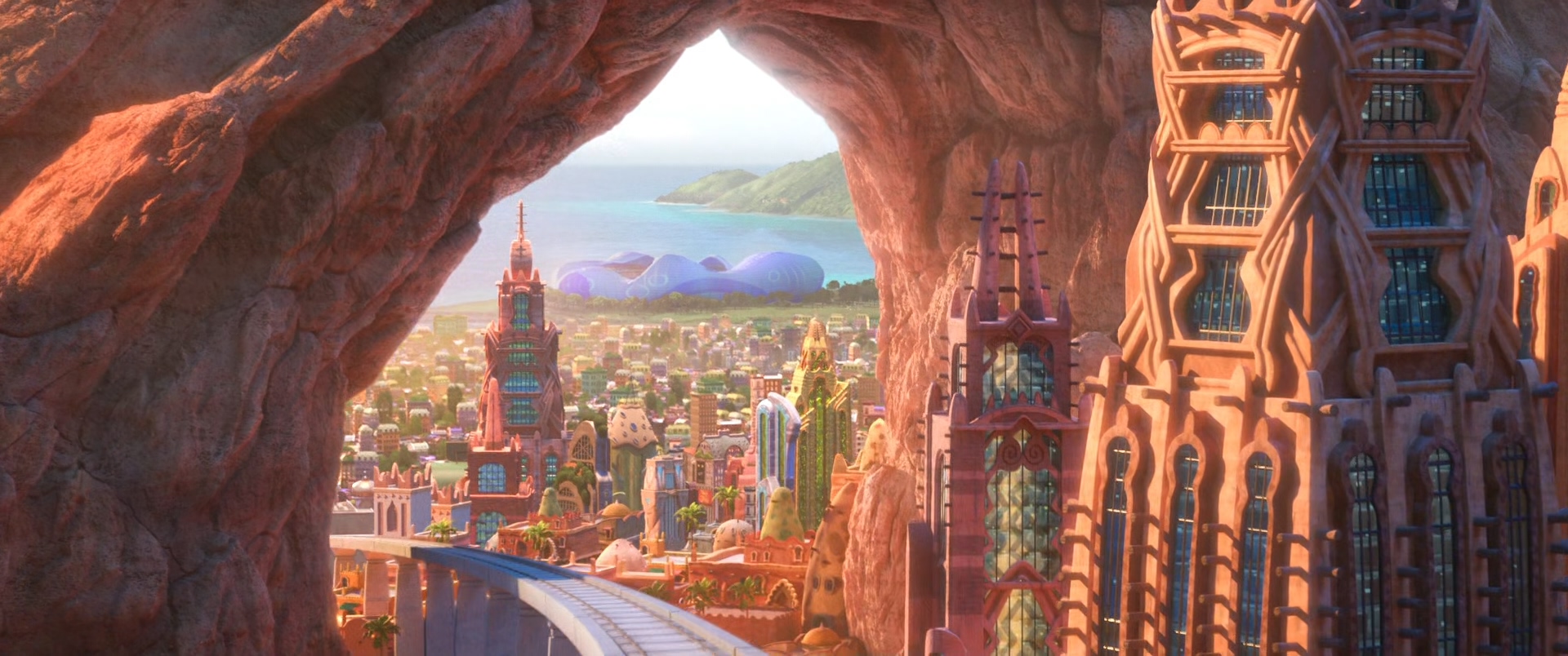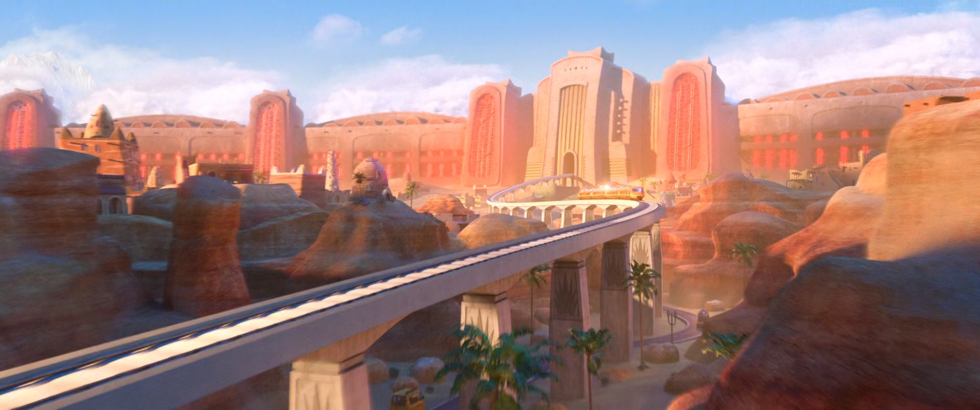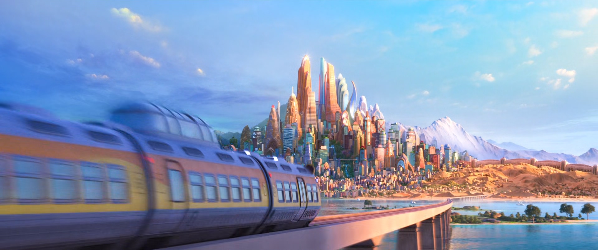 - 주토피아의 핵심 컷이라고 할 수가 있는 기차 이동 샷인데 나중에 영화를 좀 더 보면 알 수 있지만 저렇게 지나가면서 보여준 스테이지들이 결국 한 번씩 더 나온다.