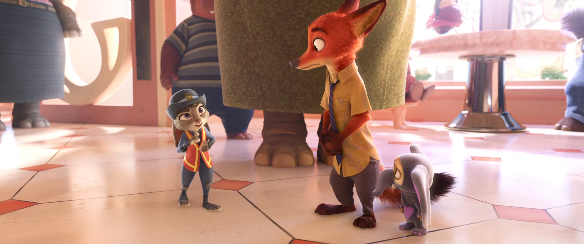 기본적으로 자연광이 들어오는 창 혹은 창문의 뷰에서는 저렇게 채도 있게 세팅하진 않는 편인데 쥬토피아에서는 유독 색에 대한 부분이 좀 유달리 튀는 편이다.