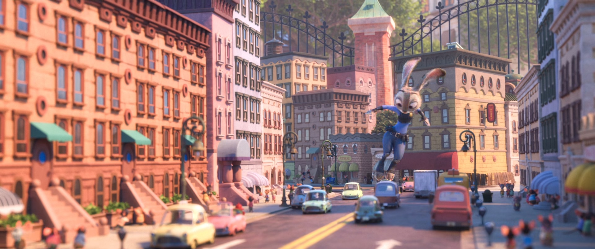 좌는 이전에 디즈니에서 나온 빅 히어로의 교차로 컷이고 우는 주토피아에서 나온 비슷한 시퀀스의 컷인데 전체적으로 파스텔톤에 암부 쪽에 컬러와 감마가 많이 올라간 것이 이전과 가장 큰 차이이며 컬러 또한 디퓨즈+반사보다 GI가 좀 더 강하게 세팅한 부분이 많다.