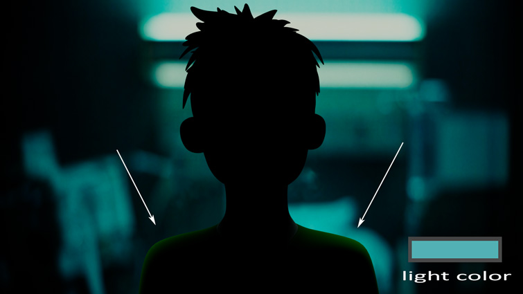 캐릭터 머리 반대쪽에는 차가운 빛을 도입하여 따뜻한 머리와 좋은 대조를 이룹니다.